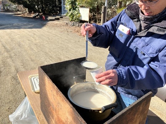 青年団のみなさん、お餅や甘酒を作ってくださった女性のみなさま、朝早くからごくろうさまでした。